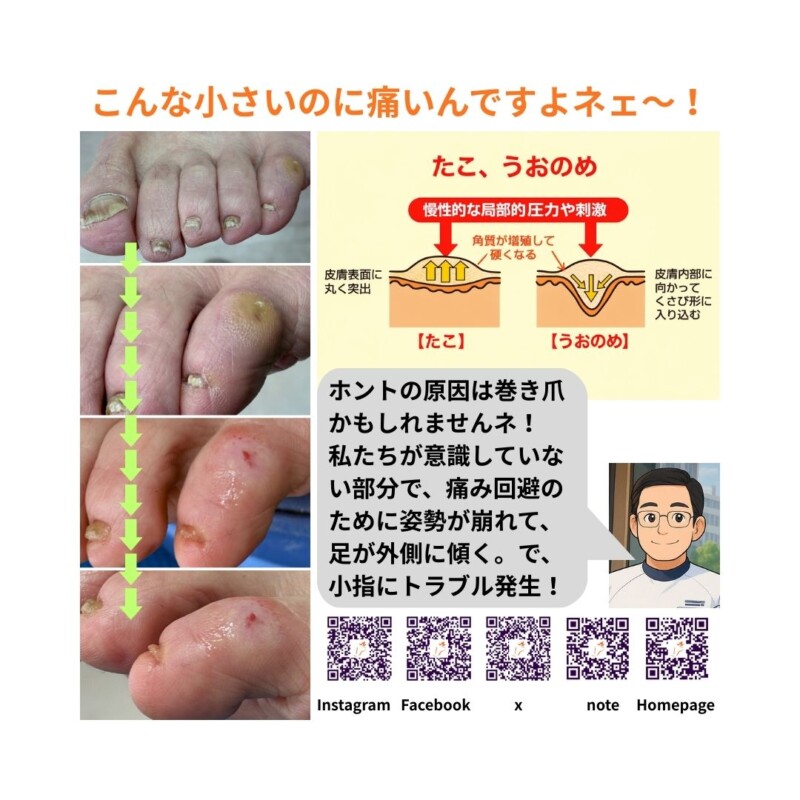 💛タコ・ウオノメの陰に、足のゆがみと巻き爪が隠れていることも💛