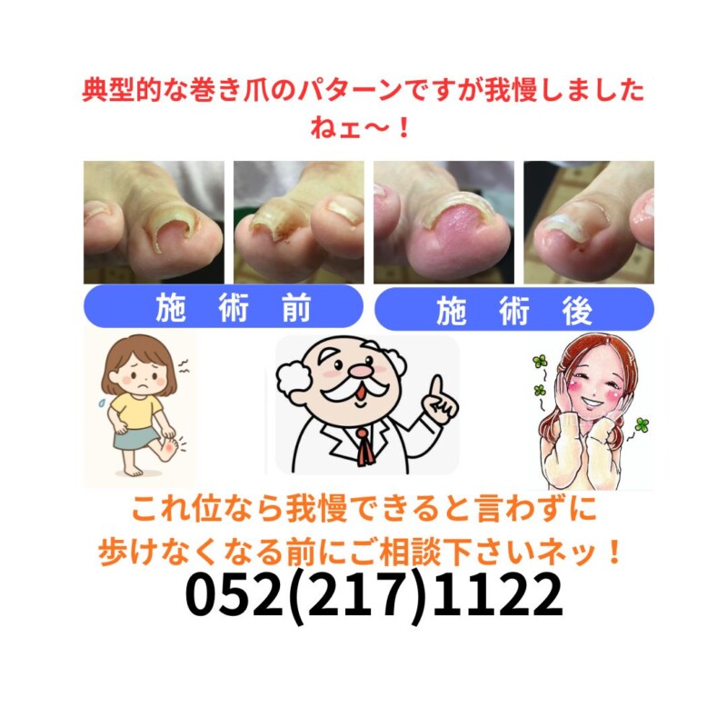 巻き爪は「少し痛いだけ」「まだ歩けるから」と我慢されやすい症状です。