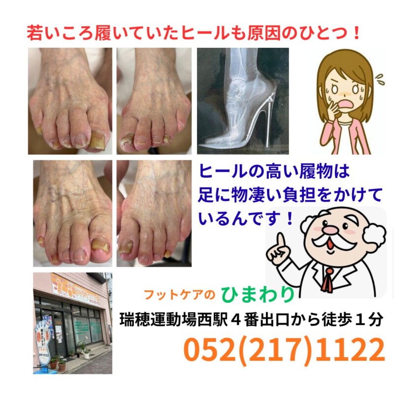 若いころは気にせず履けていた方でも、数十年後に足先の変形・外反母趾・タコ・巻き爪・痛みとして現れるケースは珍しくありません。