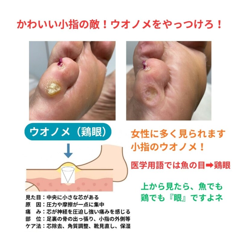本日は「かわいい小指の敵!ウオノメ(鶏眼)」の症例をご紹介します。