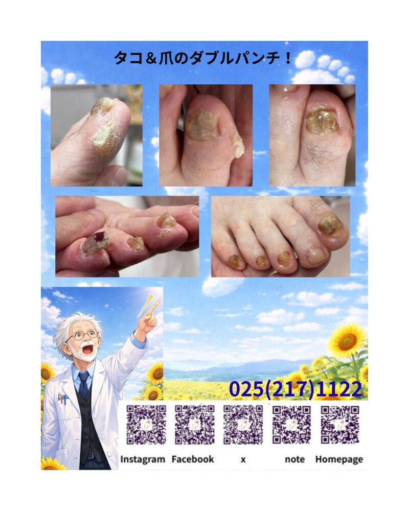 タコ(角質)と爪トラブルが同時に起きているケースをよく見かけます。