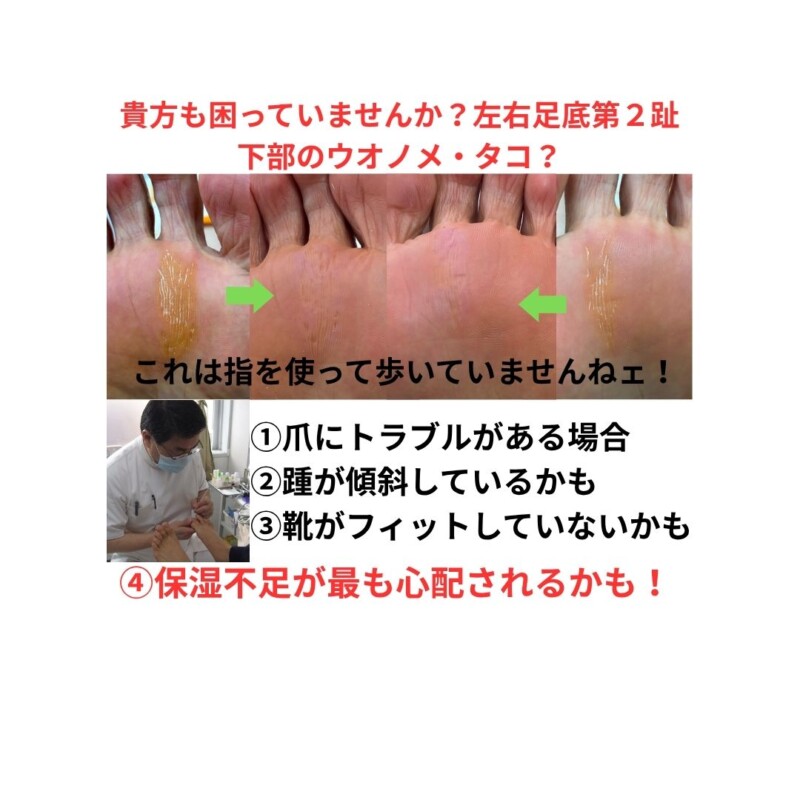 ウオノメやタコは「歩き方のクセ」「靴の選び方」「乾燥状態」を映す鏡でもあります。