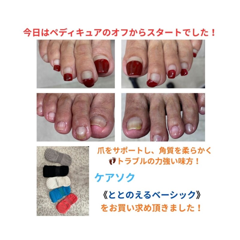 今日はまず**ペディキュアのオフ(除去)**からスタートし、