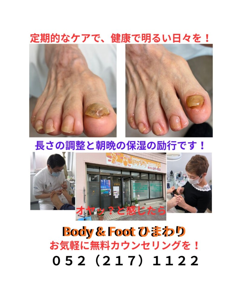 #巻き爪 #肥厚爪 #陥入爪 #爪切り #深爪 #変形爪 #爪甲鉤湾症 #うおのめ #たこ #足裏ケア #角質ケア #高齢者フットケア #名古屋市瑞穂区 #瑞穂運動場西 #補整ソックス #SUPERfeet #操体法整体 #姿勢改善 #腰痛 #膝痛 #転倒予防 #足の健康 #フットケア専門 #BodyandFootひまわり #己所六三四道場 #無料カウンセリング #相互フォロー #いいねした人全員フォロー