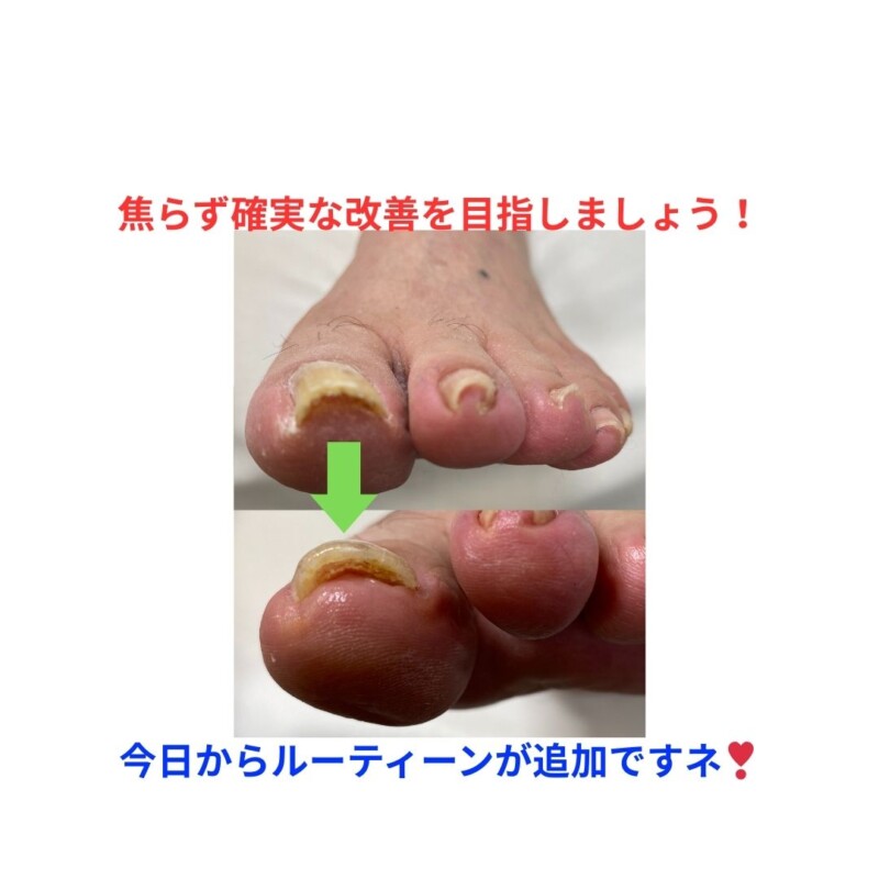 大切なのは“焦らず、確実に”改善していくこと。爪は数か月かけて伸びるため、ケアを続けることで少しずつ形が整っていきます。