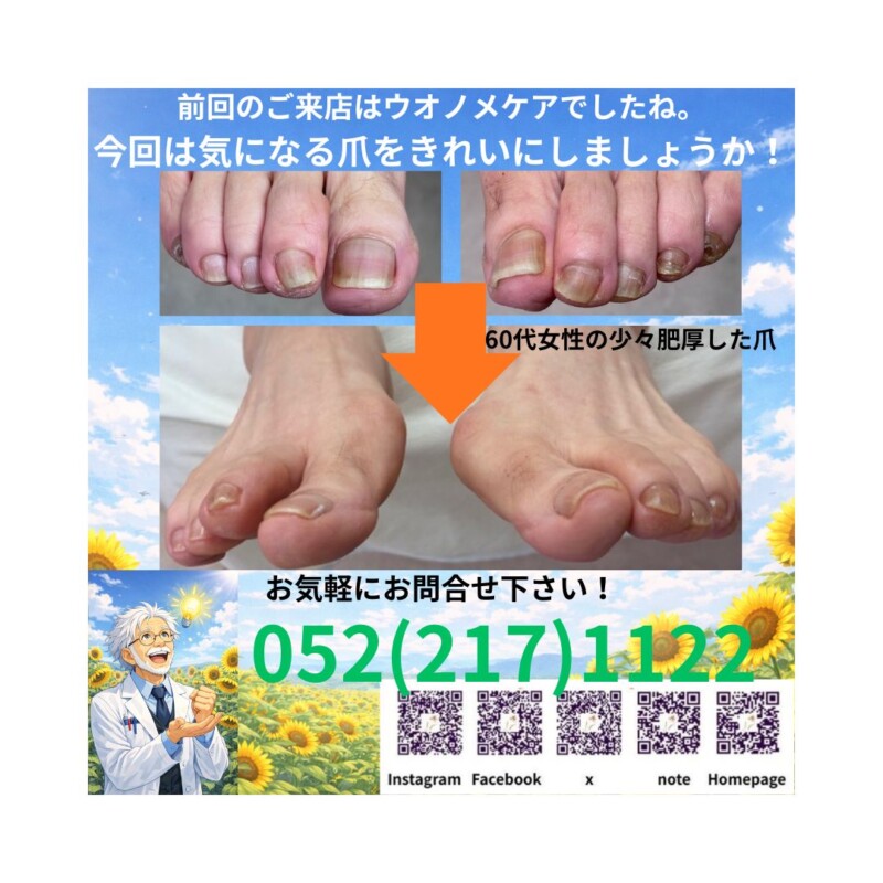 巻き爪 #陥入爪 #爪切り #深爪 #変形爪 #爪甲鉤湾症 #うおのめ #たこ #イボの治療前ケア #外反母趾 #補整ソックス #ケアソク #インソール #SUPERfeet #連動操体法 #操体法整体 #腰痛 #膝痛 #脊柱管狭窄症 #変形性膝関節症 #名古屋市瑞穂区 #瑞穂運動場西 #バイリンガルスタッフ #剣道好きスタッフ #潜水士スタッフ #日本己書道場 #己所六三四道場 #魚の目ケア #タコ除去 #足裏ケア #いいねした人全員フォロー #相互フォロー #登山 #フットケア #沈黙の艦隊 #TOKYO MER #アイススケート #卓球 #からだ110ばん #高齢者爪切り #高齢者フットケア #介護美容 #奇跡の化粧品 #自宅で顔が変わる #CHARIS化粧品 #REENECELL #奇跡のスキンケア化粧品 #驚異の韓国コスメ