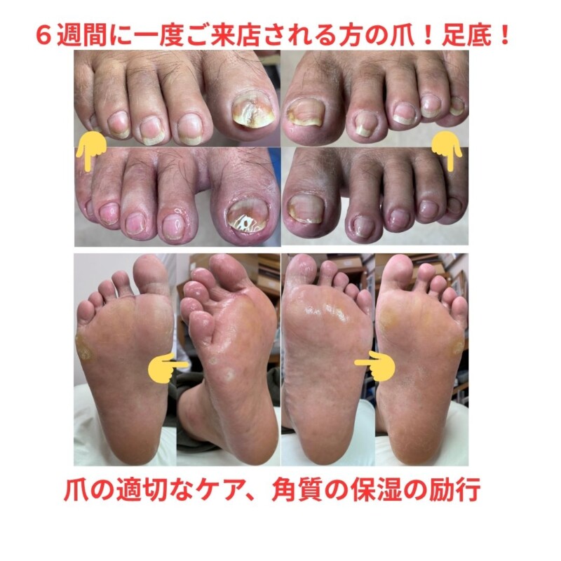 こちらは「6週間ごと」に定期ケアに来店されているお客様の爪と足底の状態です。